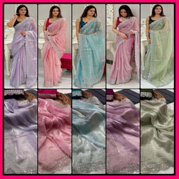 SAREES FABRIC.:-Jimmy choo fabric with Dual colour sequence and thread embroidery work and arc cut border with all over butta work.