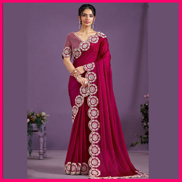 SAREES FABRICS:-Premium fandy Satin fabrics with Dori thread and sequins embroidered work with designer arco cut work border